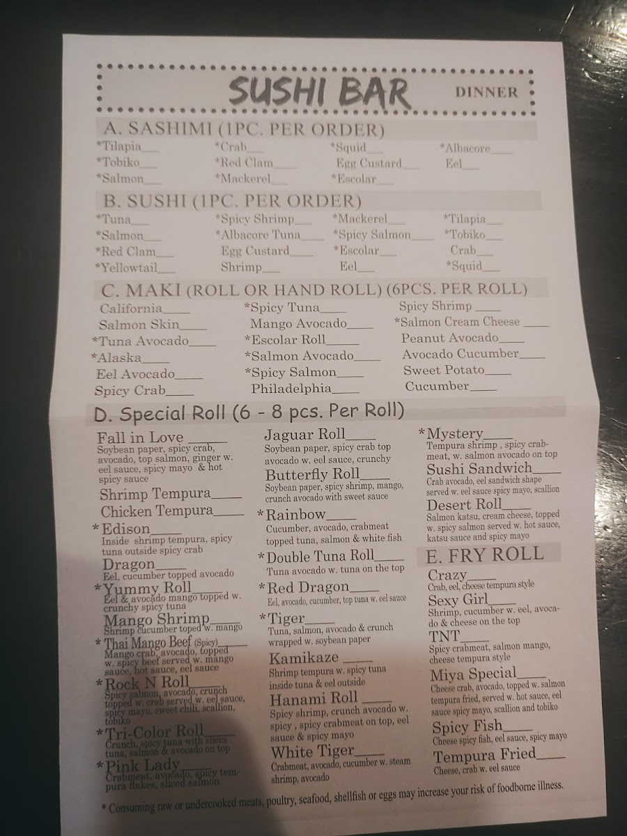 Welcome to Miya Sushi, an outstanding dining destination nestled in Jacksonville, FL. Known for its all-you-can-eat concept, Miya Sushi delights patrons with a remarkable variety of sushi rolls and an impressive selection of appetizers that elevate the experience beyond the ordinary.